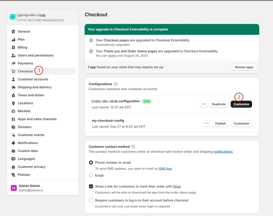 In the Configurations section, click Customize next to the checkout configuration that you want to customize.